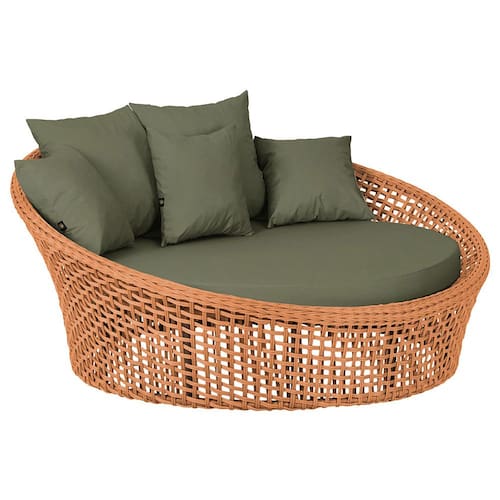 A trama artesanal em corda náutica adiciona um toque moderno e elegante, além de proporcionar flexibilidade e conforto inigualáveis. Para completar, o estofado em tecido impermeável assegura praticidade e bem-estar em qualquer ambiente, seja na área externa ou interna.