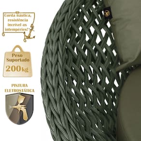 A trama artesanal em corda náutica adiciona um toque moderno e elegante, além de proporcionar flexibilidade e conforto inigualáveis. Para completar, o estofado em tecido impermeável assegura praticidade e bem-estar em qualquer ambiente, seja na área externa ou interna.