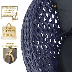 A trama artesanal em corda náutica adiciona um toque moderno e elegante, além de proporcionar flexibilidade e conforto inigualáveis. Para completar, o estofado em tecido impermeável assegura praticidade e bem-estar em qualquer ambiente, seja na área externa ou interna.