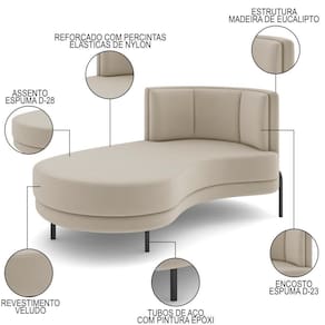 Relaxe em grande estilo com o Chaise Longue Divã 164cm Braço Direito Logus D06 Veludo Bege, da Mpozenato.