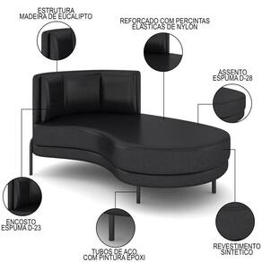 Relaxe em grande estilo com o Chaise Longue Divã 164cm Braço Esquerdo Logus D06 Sintético Preto, da Mpozenato.
