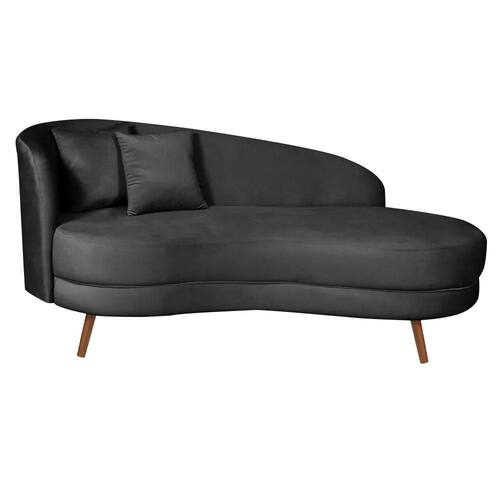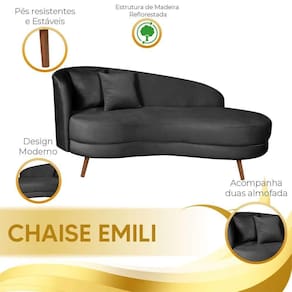 A Chaise Diva Emili e uma peca de mobiliario elegante e sofisticada, com design moderno e contemporaneo. Com estrutura robusta, estofamento luxuoso e formato curvilineo, oferece conforto e estilo.
