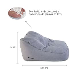 Para melhorar o Chaise Loung Casal Hannah é feito de tecido e com enchimento de pérolas de EPS que traz conforto, antiestresse, alivia a ansiedade e te faz relaxar, que nem uma abraço quentinho e cheio de amor.