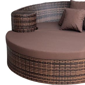 ESPECIFICAÇÕES TÉCNICAS: Chaise Meia-Lua - Altura: 75 cm - Diâmetro: 160 cm - Acompanha 2 almofadas de assento - Acompanha 5 almofadas soltas - Suporta até 300 kg