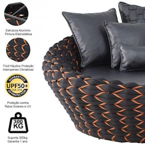 Chaise Munique Tricô Náutico Jardim Piscina área Preto