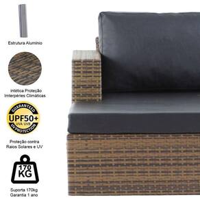 Características: Peças produzidas em alumínio e revestidas em fibra sintética com proteção UV. Nossos produtos são artesanais e podem ocorrer variações na medida de até 2cm. As cores dos produtos podem variar de acordo com o ambiente e com a iluminação em que as fotos foram tiradas. Estofado em couro náutico da Kelsons ou tecido acquablock da Karsten. Utilizamos a espuma D28 para o assento. OBS Almofadas Tecido: O Acquablock Karsten é um tecido inteligente com diferenciais tecnológicos, confeccionado em 72 algodão 28 poliéster e 205g/metros quadrados.