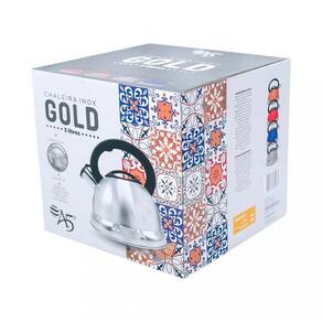 A Chaleira Gold com capacidade para 3 litros, possui um fundo que permite que a água aqueça rapidamente, e conta com um cabo resistente ao calor. Possui bico articulado com apito prático e tampa removível fácil. Adicione mais leveza à sua cozinha.