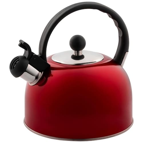 Acabamento exterior elegante Feito com aço inoxidável resistente ao calor premium, sua chaleira de apito de longa duração pode suportar o uso a longo prazo e todos os dias. Seu acabamento em aço inoxidável é fácil de manter limpo e arrumado e é uma adição atraente para a decoração da sua cozinha. 100 livre de teflon e livre de BPA. Chaleira de assobio pode aquecer e fervura rápida com grande capacidade 2,5 litros de água ou líquido para o seu chá. Despeje até 10,5 xícaras de líquido desta chaleira Alça ergonômica de empunhadura fria Alça à prova de calor As curvas formadas da alça também garantem a segurança ao despejar, então não importa o quão quente a base fique, suas mãos e dedos ficam protegidos livres do calor e do vapor Agradável som de assobio quando a temperatura ideal é alcançada Com apitos de um tom para lembrá lo da chaleira fervida quando você não estava na cozinha. O bico de pressão com o polegar facilita o derramamento basta inclinar, abrir e despejar em um único movimento