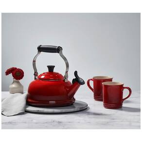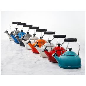 Chaleira de assobio de 1 4 , 5 quart feita de aço revestido de esmalte A alça ergonômica e resistente ao calor garante uma pegada segura Tampa removível em forma redonda com botão de tampa fenólica que permanece fria para uso em todas as fontes de calor, incluindo indução só lavar as mãos Mede aproximadamente 15 x 25 x Marca: Não Informado