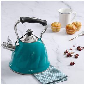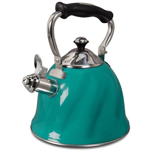Mr. Coffee Alderton 2,3 L. Chaleira em aço inox com tampa, verde. Asa giratória em tubo de espelho com baquelite preta. 2. 3 Litros. Tampa do bico dobrável para despejar com segurança e facilidade e um gatilho para manter a temperatura fria para segurança. Lavar à mão recomendado. Chaleira construída em aço inoxidável sólido. Chaleira assobiando avisa quando a água está fervendo