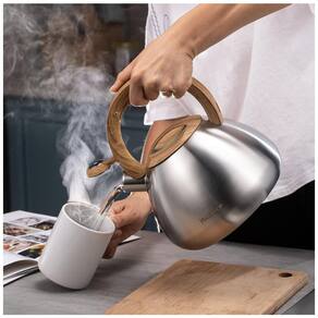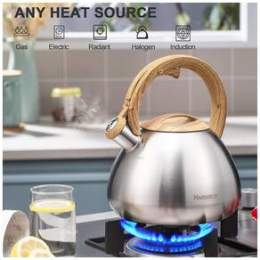 Despejo com um toque A alça de nylon e madeira da chaleira para fogão possui um conveniente botão de interruptor de um toque, para que você não precise tocar em nenhuma parte do corpo do bule ao derramar água, garantindo que você possa ficar longe do calor e do vapor durante o uso. Base de calor rápido para todos os fogões Esta chaleira de água quente foi projetada com uma base generosa que maximiza a condução de calor. Adequado para todos os tipos de fogão, como fogão de indução, forno elétrico, fogão a gás e gás natural. Por favor, use um fogo baixo ou médio para aquecer a chaleira de aço inoxidável para evitar que a chama queime o bico ou descolore o corpo da chaleira. Materiais de grau alimentício A chaleira de chá usa acabamento profissional de grau alimentício da FDA e artesanato em aço inoxidável 18, 8 para garantir que seja à prova de ferrugem e resistente à corrosão, não desbote e fácil de limpar e aquece rapidamente. Bule 100 livre de PFOA, não tóxico e não desbota, proporcionando melhor proteção à saúde de sua família. Som de assobio pontual O bule de chá emitirá um apito alto quando a água atingir o ponto de ebulição. Quando você se concentra em suas tarefas domésticas, filmes, música ou qualquer outra coisa, a chaleira do fogão apita para lembrá lo quando a água estiver fervendo e você não sentirá falta. Dica basta encher 80 da capacidade da chaleira para que a chaleira possa apitar quando a água estiver fervendo Marca: Não Informado