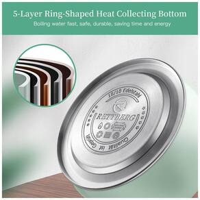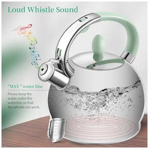 AÇO INOXIDÁVEL DE GRAU ALIMENTAR E VIDA LONGA Bule para fogão feito de acabamento profissional de qualidade alimentar e artesanato em aço inoxidável 304, garante que as chaleiras sejam resistentes à ferrugem e à corrosão. A longevidade das chaleiras para fogão foi efetivamente garantida. PUNHO DE ENGENHARIA E LUVAS DE ALGODÃO ANTI ESCALDAÇÃO Punho ergonômico e botão de um toque, botões de um toque do bule de chá facilitam a operação com uma mão, luvas de algodão anti queimadura como presentes tornam você mais . TRANSFERÊNCIA DE CALOR CIENTÍFICA Base encapsulada de cinco camadas de aquecimento de fundo de chaleiras de chá para maior eficiência de ebulição. adequado para qualquer fonte de calor, incluindo fogões a gás, elétricos, de indução, halogênio e radiantes. Dicas Certifique se de não exceder a linha do nível da água e a tampa está 100 selada, caso contrário, afetará o apito Marca: Não Informado