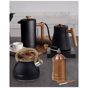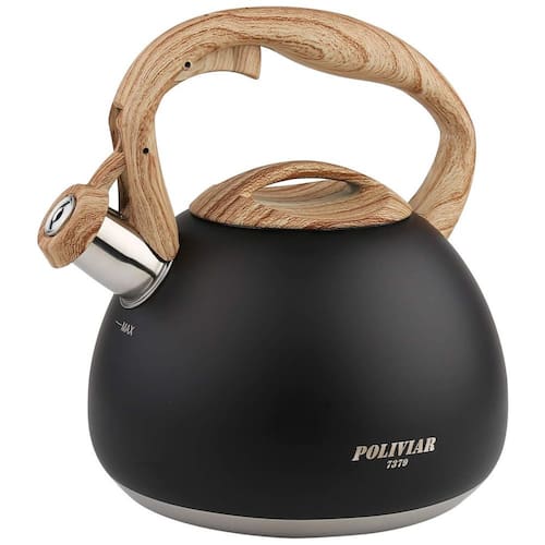 A chaleira com duas cores de tons mostrada pela primeira vez na AMZ e o design inspirado no mistério do fundo do mar. Ele permite que você combine facilmente seus utensílios de cozinha, adicionando sentido e energizando sua cozinha e também seu estilo de vida. A chaleira em aço inoxidável 18, 8 de qualidade alimentar garante resistência à ferrugem e corrosão. Todas as superfícies expostas à água e partículas de alimentos são certificadas como seguras de qualidade alimentar. ASSOBIO ALTO PEGUE SUA ATENÇÃO O assobio alto e automático chama sua atenção com bastante ruído de fundo. O apito audível nesta chaleira irá lembrá lo de forma amigável enquanto você está focado em outras coisas ruins como tarefas domésticas, filmes, dramas ou jogos ao mesmo tempo. Simples e economiza tempo sem qualquer desconforto. PONTE DE INDUÇÃO COM BASE DE CALOR RÁPIDO Esta chaleira foi projetada com uma base generosa de que maximiza a condução de calor. Nossa tampa autovedante oferece uma vedação 100 para aumentar a eficiência da fervura. Adequado para qualquer fonte de calor, incluindo gás, elétrico, indução, halogênio e fogões radiantes. CABO SEM CALOR COM BOTÕES DE SIMPLE TOUCH A chaleira de indução com alça revestida de silicone permite que você segure a chaleira com as mãos sem risco de queimaduras. A forma ergonômica e o design maximizam seu conforto para levantar, despejar e preencher. O botão de toque simples fornece abertura e fechamento fáceis e torna possível servir com uma mão Marca: Não Informado