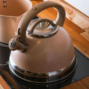 A Chaleira de Indução Granito Chef 3L da Lyor combina funcionalidade, segurança e estilo em um só produto. Com acabamento bege texturizado e design sofisticado, é ideal para o preparo de chás, cafés e água quente no dia a dia. Possui apito sonoro que indica o momento certo de servir, cabo ergonômico com proteção térmica e base especial compatível com todos os tipos de fogão, inclusive indução. Fabricada em alumínio de alta qualidade, garante aquecimento rápido e uniforme, oferecendo praticidade e durabilidade à sua rotina. Ficha Técnica: Contém: 1 Chaleira Capacidade: 3L Material: Alumínio Cor: Bege Medidas: 24cm C x 22cm L x 20cm A Peso: 0,73kg Lava-louças: Não Micro-ondas: Não Forno: Não Fogão: Sim inclusive indução Freezer: Não Destaques do Kit ou item: Apito sonoro que indica o ponto de fervura Cabo ergonômico com proteção térmica Base de indução compatível com todos os fogões Cuidados: Lavar com detergente neutro, esponja macia e secar imediatamente. Evitar produtos abrasivos. Observação: Imagens ilustrativas. As cores podem variar conforme a iluminação e o monitor. Marca: Não Informado Ean: 7908122214912