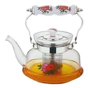 Chaleira de Vidro Alça em Cerâmica C/ Infusor de Chá 1L