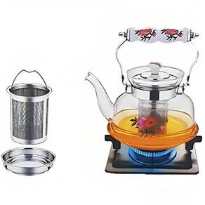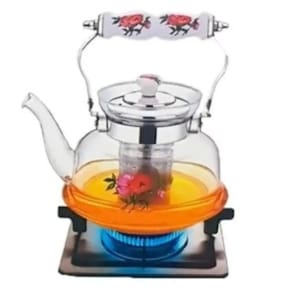 Chaleira com infusor de chá feita de vidro, possuí alça inox com cerâmica, capacidade de 1L (1000ml), e o melhor, pode ir direto ao fogo.