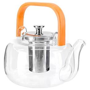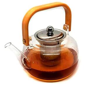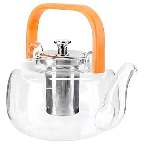 Chaleira de Vidro Borosilicato Base Plana com Infusor Inox e Alça de Madeira para Chá Transparente Negócio de Gênio