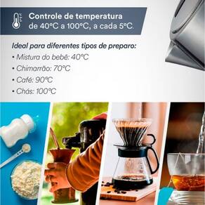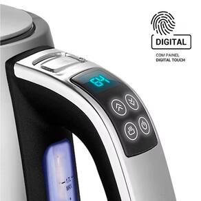 Chaleira elétrica EOS 1.8L Inox com painel Digital Touch, controle de temperatura, função Keep Warm e desligamento automático.Características