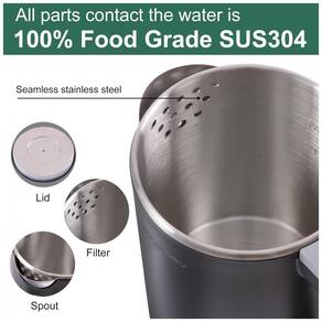 Chaleira elétrica portátil com capacidade de 0,8L, desligamento automático, corpo em aço inoxidável, potência de 600W e sistema de proteção contra fervura a seco.Características