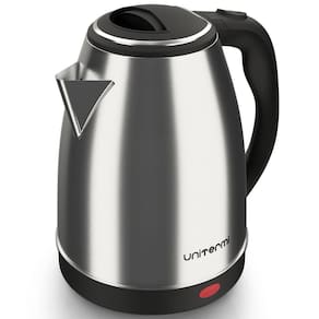 Chaleira elétrica Unitermi 1.8L com desligamento automático, acabamento em inox polido, base destacável 360 graus e luz indicadora de funcionamento.Características