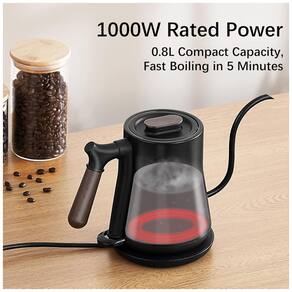 Chaleira elétrica Naibsan 0.8L (110V) com potência de 1000W, aquecimento rápido, fabricada em aço inoxidável, proteção contra superaquecimento e desligamento automático.Características