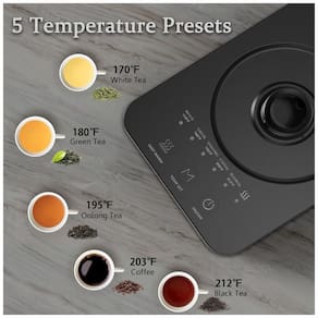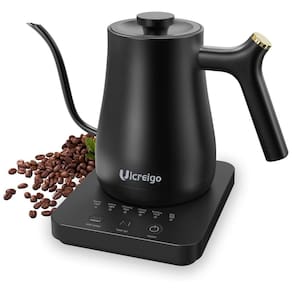 Chaleira Elétrica 800mL em Aço Inoxidável com Controle de Temperatura, 5 Predefinições, 110V 1200W, Ulcreigo, Preta