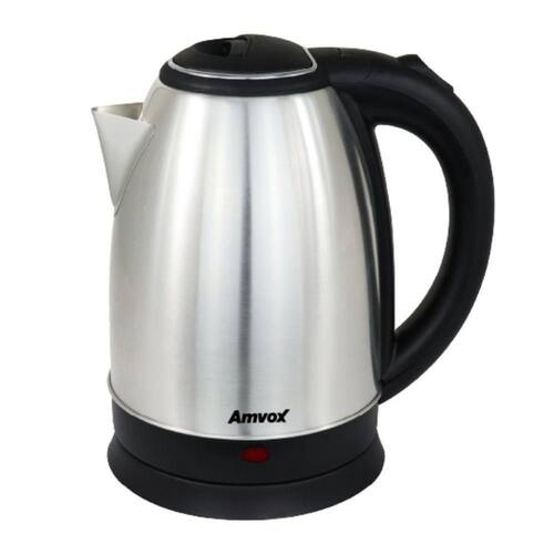 Chaleira Elétrica Amvox AKL0150 com capacidade de 1,8 litros, design em aço inoxidável, desligamento automático, base removível com rotação 360° e luz indicadora de funcionamento.Acessórios