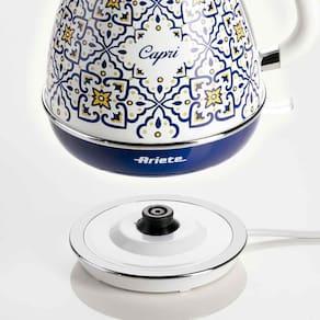 A Chaleira elétrica da linha Capri com linhas sinuosas e elegantes lembram a arte e a cultura mediterrânea, com base sem fio e capacidade de 1,7 litros, para tornar o café da manhã ou a pausa da tarde ainda mais intensos. A chaleira elétrica Capri é uma verdadeira aliada para os amantes do chá, chás de ervas e bebidas quentes.