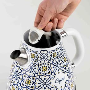 A Chaleira Elétrica Ariete Capri traduz o design italiano em cada detalhe, com inspiração direta no lifestyle sofisticado do resort de Capri. Suas linhas suaves e cores exclusivas fazem dela um verdadeiro destaque na cozinha. Prática e eficiente, aquece a água rapidamente para o preparo de chás, cafés e infusões, trazendo conforto para o dia a dia. É a união perfeita entre tecnologia, segurança e um design diferenciado que transforma a bancada em um ponto de estilo.