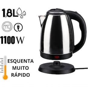 Características do Produto Capacidade Generosa de 1.8L: Ideal para preparar café, chá, sopas instantâneas e mais em poucos minutos. Aço Inox de Alta Qualidade: Durabilidade e design elegante para combinar com qualquer cozinha. Base Rotacional de 360 Graus: Mobilidade total para maior praticidade e facilidade de uso. Desligamento Automático: Segurança garantida com desligamento após fervura ou quando a chaleira está vazia. Rápida e Econômica: Ferve água em minutos com baixo consumo energético, graças aos 1100W de potência. Alça Ergonômica e Isolante: Facilita o manuseio seguro, evitando queimaduras e acidentes. Design Compacto e Funcional: Integra-se perfeitamente em cozinhas de qualquer tamanho.Especificações TécnicasCapacidade: 1.8 litros.Material: Aço inoxidável.Potência: 1100W.Voltagem: 110V.Frequência: 60Hz.Peso Líquido: 0,8 Kg.Peso Bruto: 1,0 Kg.Dimensões do Produto: 22,5 cm (L) x 24 cm (A).Você Vai Receber em Sua Casa 1 Chaleira Elétrica Bak 1.8L Inox com Base Rotacional. 1 Manual de Instruções para Uso Seguro e Eficiente.