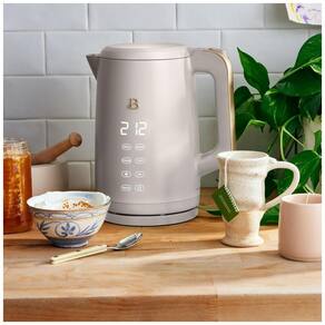 Chaleira elétrica com capacidade de 1,7 litros, corpo em aço inoxidável com parede dupla, painel com display touch, 4 programas de temperatura, função manter aquecido, resistência de 1500W, base com conexão de 360°, jarra sem fio, desligamento automático e proteção contra fervura a seco.Acessórios