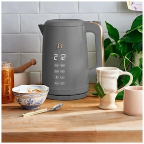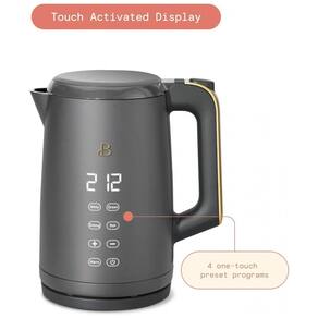 Chaleira elétrica com corpo em aço inoxidável, parede dupla para isolamento térmico, display touch com 4 programas de temperatura para chás, função manter aquecido, base 360°, desligamento automático e proteção contra fervura a seco.Acessórios
