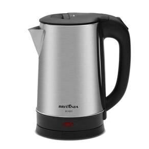 Chaleira elétrica Britânia com capacidade de 1,6 litros, potência de 1150W (127V) ou 1500W (220V), base giratória 360°, desligamento automático, jarra de inox e porta-fio.Características