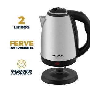 Chaleira Elétrica Britânia 2 Litros 1200W BCH25I Inox 127V. Possui jarra em aço inox com capacidade para 2 litros, base 360C, desligamento automático após atingir a fervura, botão para abertura da tampa e bico direcionador de fluxo. Inclui luz indicadora de funcionamento e pegador ergonômico.Características
