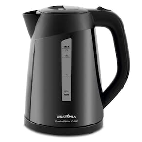 Chaleira Elétrica Britânia com capacidade de 1,7L, desligamento automático, base removível, jarra com rotação 360°, filtro de saída e botão de abertura da tampa.Características