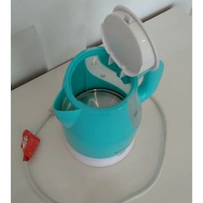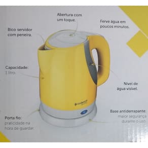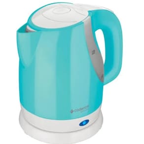 Chaleira elétrica Cadence Blue com capacidade de 1 litro, potência de 1100W, luz indicadora, porta-fio, desligamento automático e resistência embutida.Características