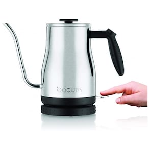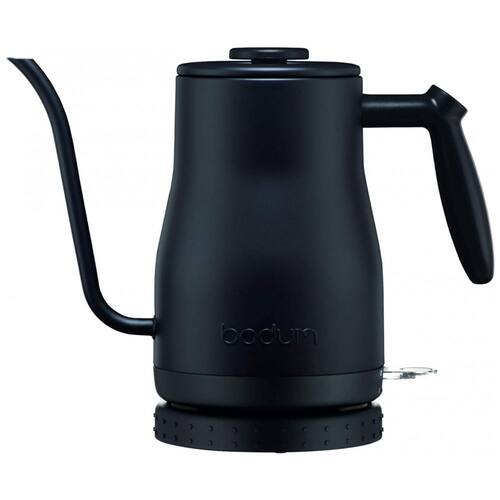Chaleira elétrica Bodum 1L, 1500W, aço inoxidável, desligamento automático e design ergonômico.Características