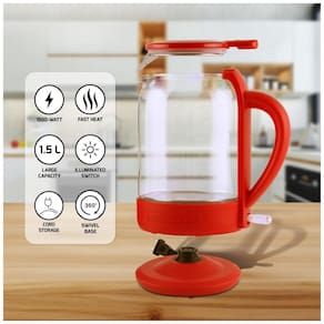 Chaleira elétrica de vidro com capacidade de 1.5L, potência de 1500W e voltagem 110V. Possui desligamento automático, tecnologia ProntoFill para preenchimento sem abrir a tampa, base giratória 360º com armazenamento de cabo e luzes LED azuis que se acendem durante o aquecimento. Fabricada com vidro de borosilicato temperado e aço inoxidável.Acessórios
