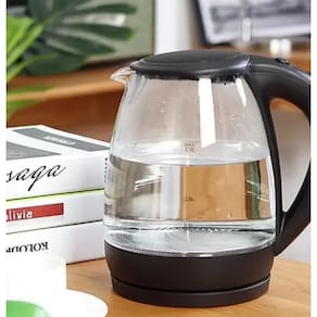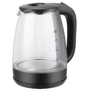 Especificações: Cor: Preto Potência de 1500w / Tensão de 220V. Potência de 1000w / Tensão de 127V. Frequência 50-60 Hz. Com capacidade de 1.8 litros. Com desligamento automático. Possui luz indicadora de funcionamento. Possui base giratória. Material: Vidro e PP Luz azul de LED na base Tamanho (AxL): 19x15cm (sem a base) Peso: 0,268g Marca: CTMD