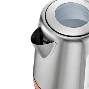 Possuindo capacidade ideal para ferver até 1,7 litros de água, auxiliando no preparo de chás ou alimentos diversos, como arroz, risoto, sopas e outros. Além disso, este modelo possui tampa automática, que se abre ao acionar o botão na alça e visor transparente, permitindo que você visualize dentro da chaleira.