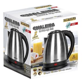 Chaleira elétrica em aço inox com capacidade de 2 litros e potência de 1000W. Possui desligamento automático, proteção contra funcionamento a seco e base giratória 360. Ideal para uso doméstico ou em escritórios.Acessórios