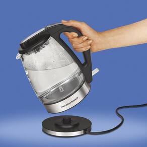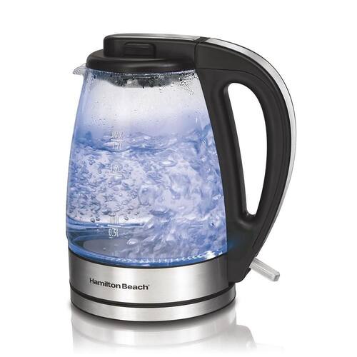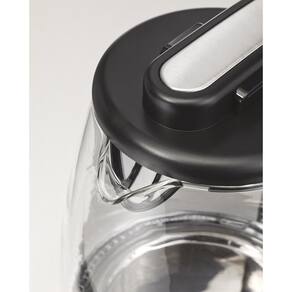 Chaleira elétrica com jarra de vidro de 1,7L, desligamento automático, proteção contra funcionamento sem água, filtro embutido e iluminação azul.Características