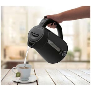 Chaleira Elétrica Black Decker K2200 com seletor de temperatura, desligamento automático, filtro anticalcário, visor de nível de água, luz indicadora de funcionamento e porta fio na base.Características