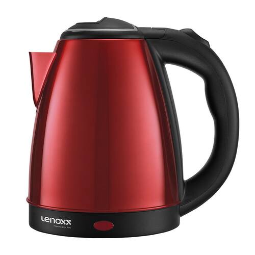 Chaleira Elétrica Lenoxx Thermo Inox Red PCE213 com capacidade de 2,2 litros, corpo em aço inox, desligamento automático, base removível e luz indicadora de funcionamento.Características