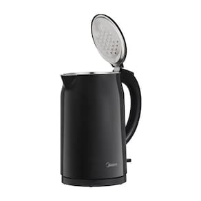 Chaleira elétrica com jarra em aço inoxidável e design Double Wall para maior segurança e eficiência. Possui capacidade de 1,7L, desligamento automático e indicador de nível de água.