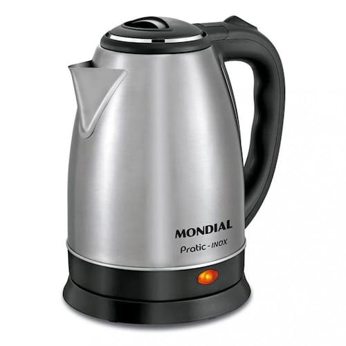 Chaleira elétrica Mondial Pratic CE-06 com capacidade de 2 litros, potência de 1200W, desligamento automático e jarra removível.Características