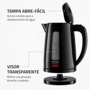 - CAPACIDADE: 1,7 LITROS A chaleira elétrica Mondial aquece a água em poucos minutos e prepara até 7 xícaras de chá de uma vez!
