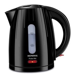 Chaleira elétrica Mondial Pratic Hot CE-07 com capacidade de 1 litro, desligamento automático, lâmpada piloto e base giratória 360°.Características