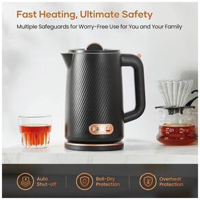 Diga adeus às longas esperas com a Chaleira Elétrica OLEGA! Com potência de 1500W, ela ferve água em minutos, perfeita para manhãs agitadas, pausas para chá rápidas ou quando você precisa de água quente rapidamente. Seu design de dupla camada garante segurança, com exterior de plástico que não esquenta e interior de aço inoxidável 304 livre de BPA. Com capacidade de 1.8L, é ideal para servir de 4 a 6 pessoas, com desligamento automático e proteção contra fervura a seco. Além disso, seu design elegante e fácil de limpar se destaca em qualquer cozinha.