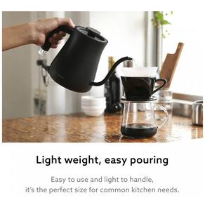 Chaleira elétrica com bico pescoço de ganso em aço inoxidável, desenvolvida para aquecimento rápido de água em preparos de café e chá com controle preciso de fluxo. O reservatório de 0,6 L e o formato compacto facilitam o uso diário na cozinha, atendendo até três xícaras de café ou duas canecas grandes. O bico de precisão e a alça ergonômica permitem direcionar o jato de água de forma uniforme, favorecendo métodos filtrados e pour-over. O indicador luminoso em tubo de néon no cabo sinaliza o funcionamento, enquanto a base elétrica destacável simplifica o manuseio na hora de servir.Acessórios